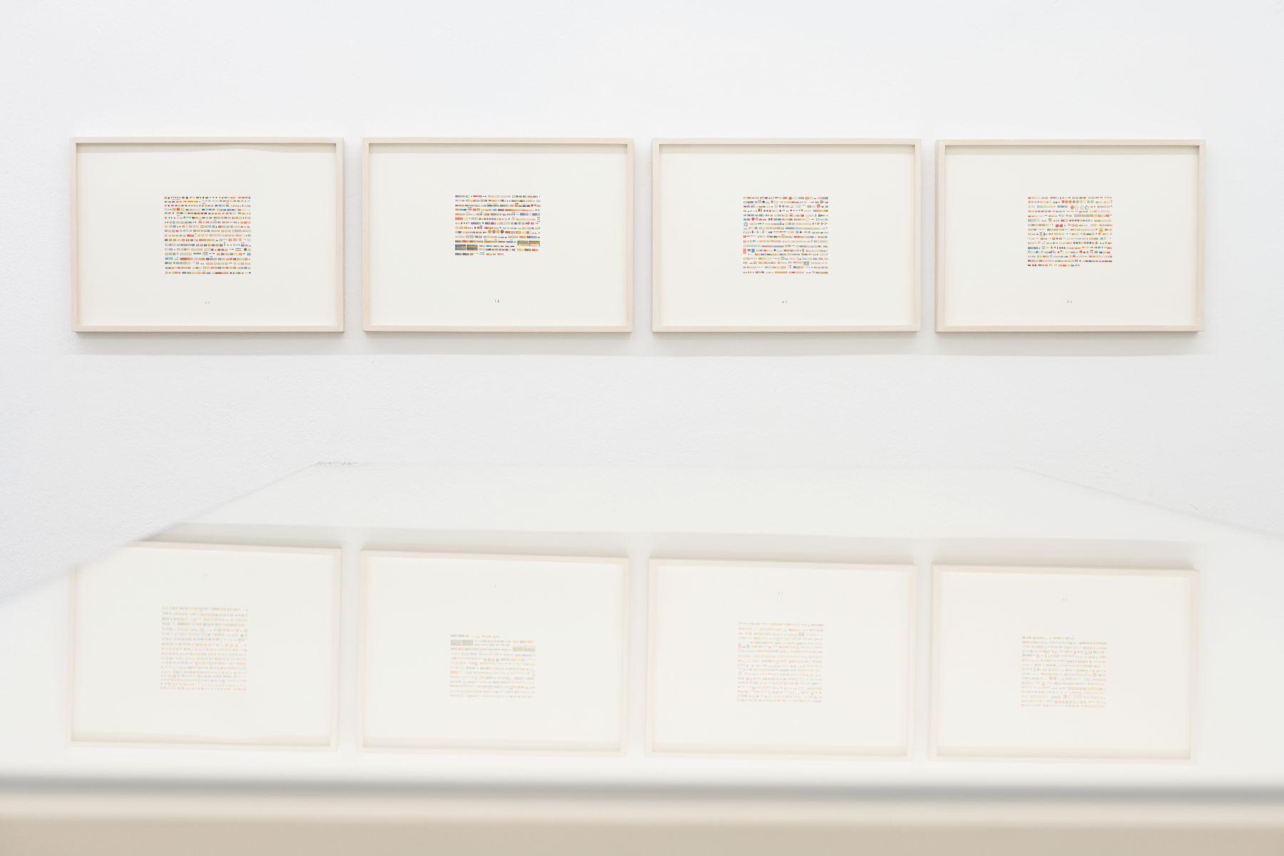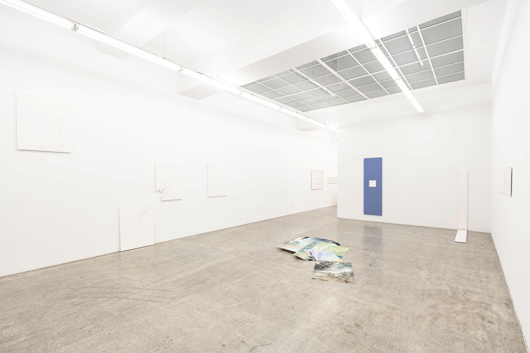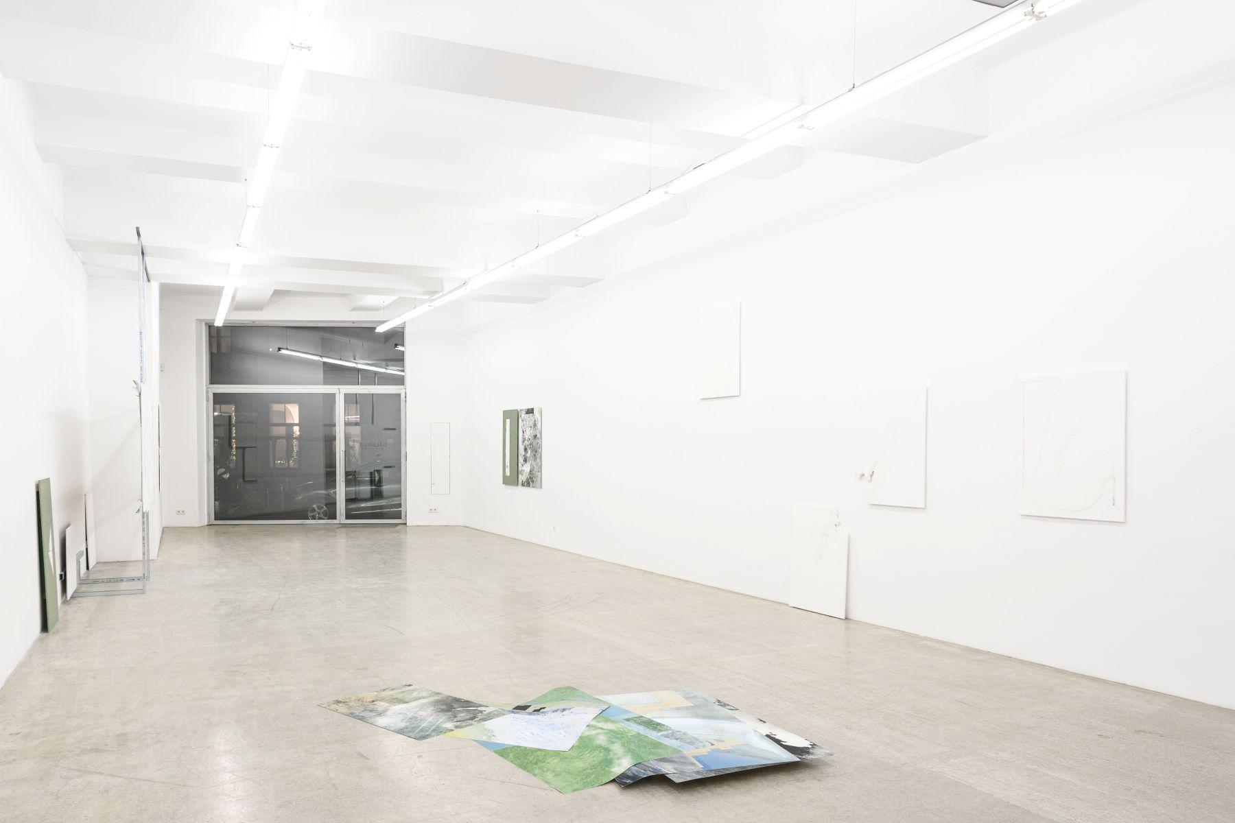 Solches Bildmaterial wird in Form von flach auf dem Boden liegenden, sich teils überlagernden Digitaldrucken gleichzeitig Sujet und Objekt. Im Blick auf diese – wie Flugblätter vom Himmel gefallenen – Reste einer fluide durchscannten Welt taucht man in eigenwillige, nahezu abstrakte beziehungsweise sich auflösende Formationen, die von Salzverkrustungen, Wolken und ihren Schatten oder Wasserlinien herrühren. Besonders auffällig sind darüber (oder darunter?) liegende Rasterstrukturen, die wie stark vergrößerte Pixel immer wieder auftauchen, als würden die Prints daran erinnern wollen, dass jeder manifest gewordene Blick auf die Welt eine kartografische Projektion ist, eine Übersetzung aus einer Dimension in die andere.