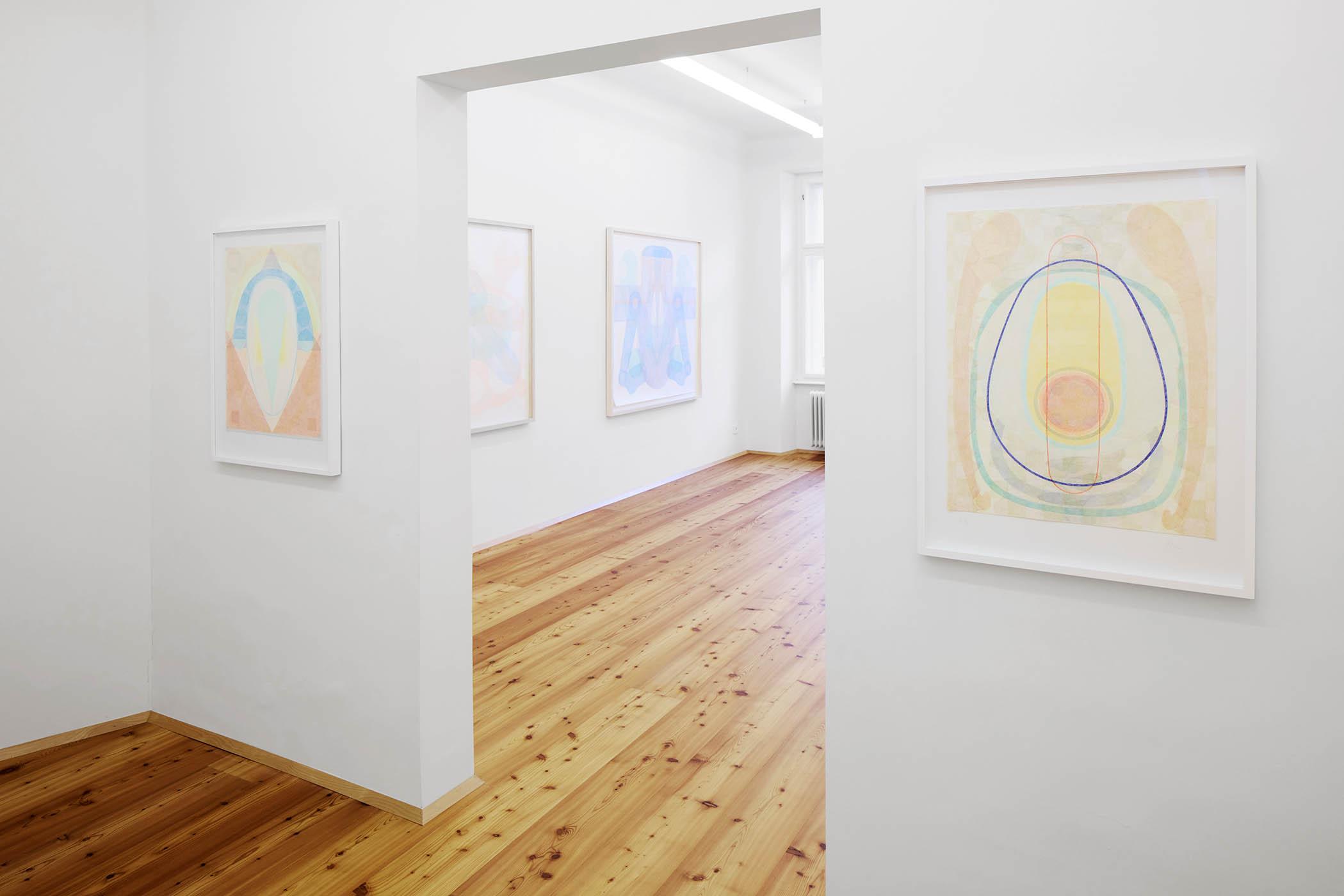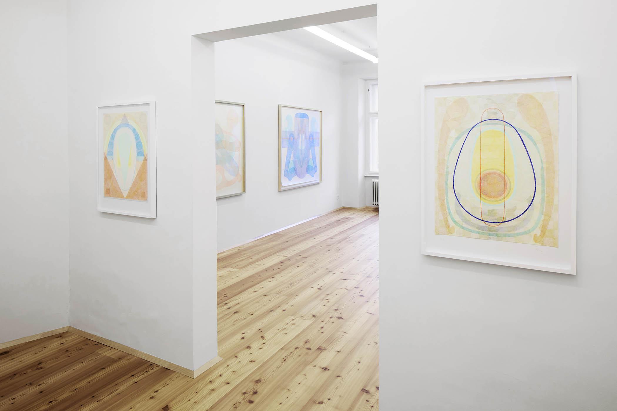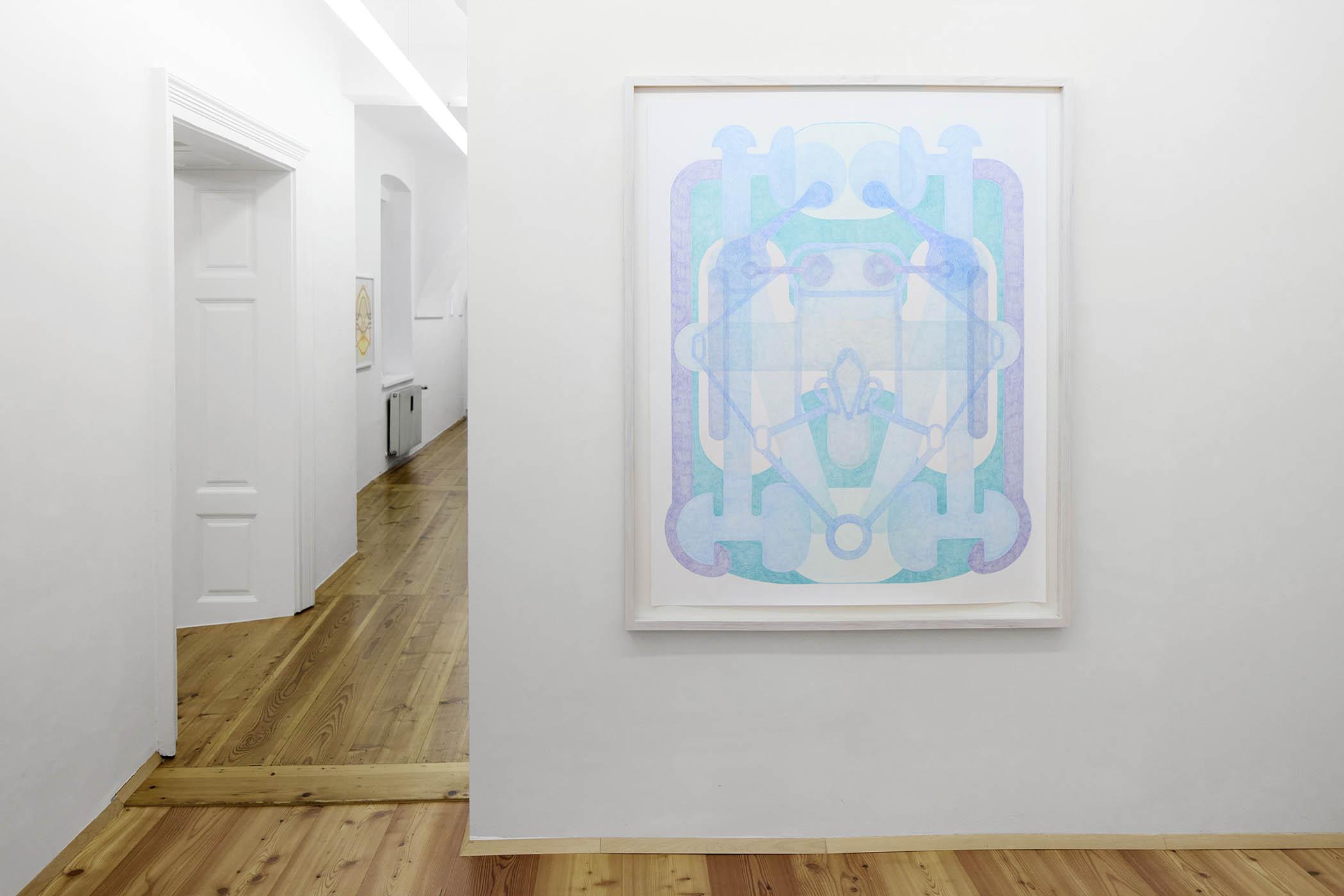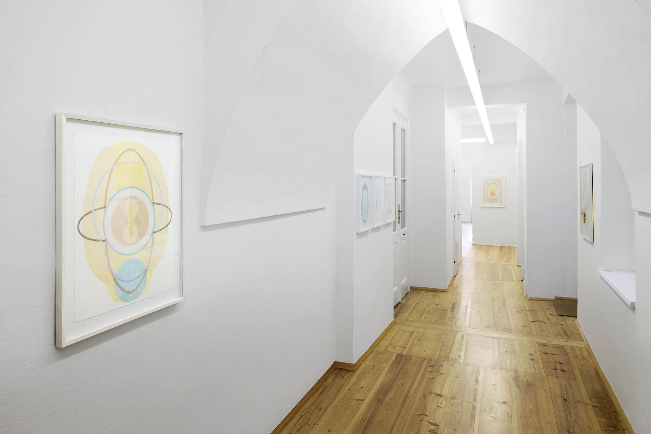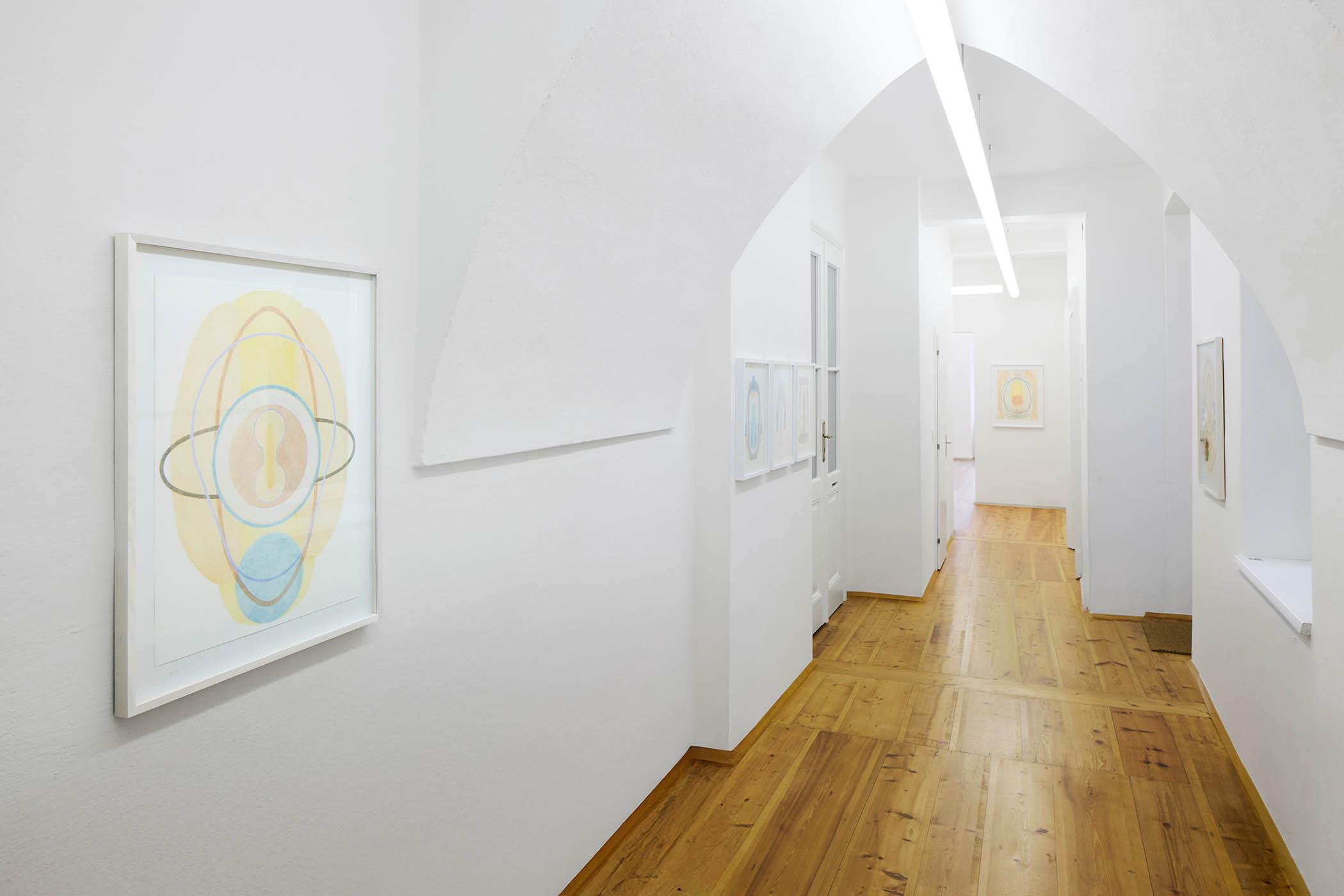 Vor rund fünf Jahren hat Iris Kohlweiss, die bei Christian Ludwig Attersee Malerei studiert hat, einen Quantensprung in ihrem künstlerischen Schaffen gemacht. Sie hat sich nicht nur dem Medium Zeichnung zugewandt, sondern auch begonnen, sich theoretisch und künstlerisch mit Raumwahrnehmungen und Raumempfindungen auseinanderzusetzen. Dabei hat sie in den kurzen Jahren eine originäre Bildsprache entwickelt, die eine so komplexe wie poetische Raummetaphorik hervorgebracht hat. Kunsthistorisch verknappt könnte man ihre Herangehensweise als Synthese von Maria Lassnigs Körpergefühlsbilder und Hilma af Klints Visualisierungen einer geistigen Dimension verorten. Die „Realm Translations“, wie Kohlweiss ihre damals begonnene Serie der „Raumübertragungen“ nennt, sind nicht nur vorläufiger Höhepunkt ihres künstlerischen Schaffens, sondern zollen auch ihrer lebenslangen Faszination für Räume und deren spezifische Atmosphären Rechnung. Doch nichts auf den Zeichnungen scheint auf den ersten Blick auf bestimmte Räume zu verweisen. Die Struktur der Komposition hat keinen Bezug zum jeweiligen Grundriss, noch spiegeln die Formen charakteristische Elemente des jeweiligen Raumes. Die fein nuancierte Farb- und Formensprache der Künstlerin führt also über das hinaus, was wir als unmittelbare Realität ansehen würden.
