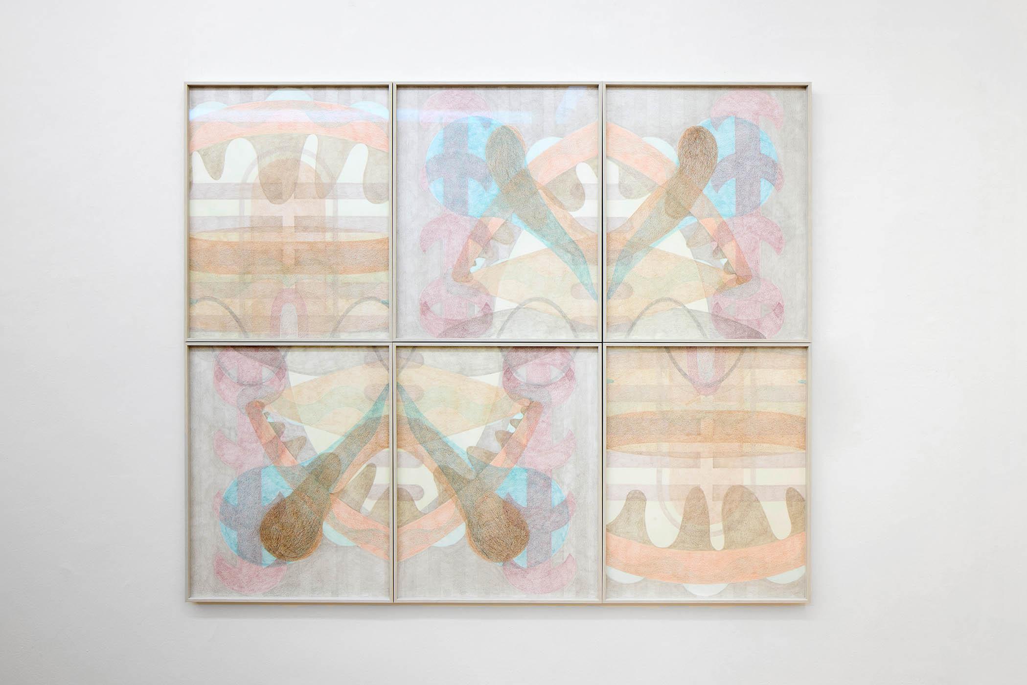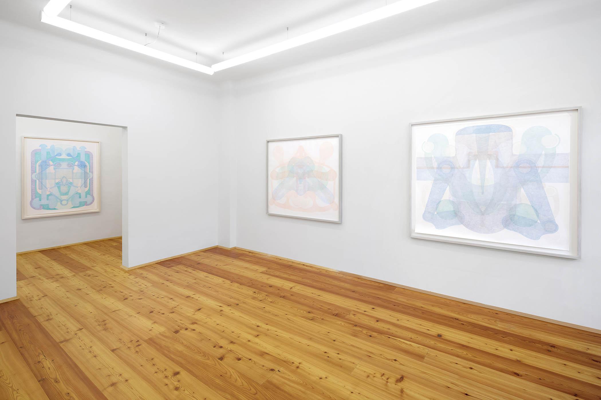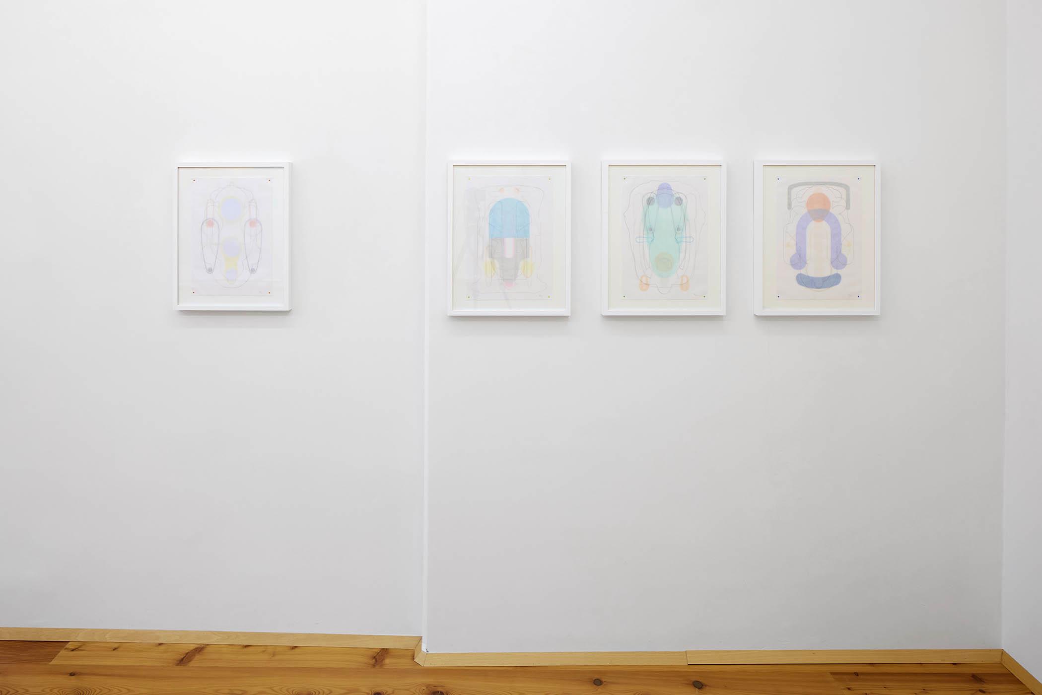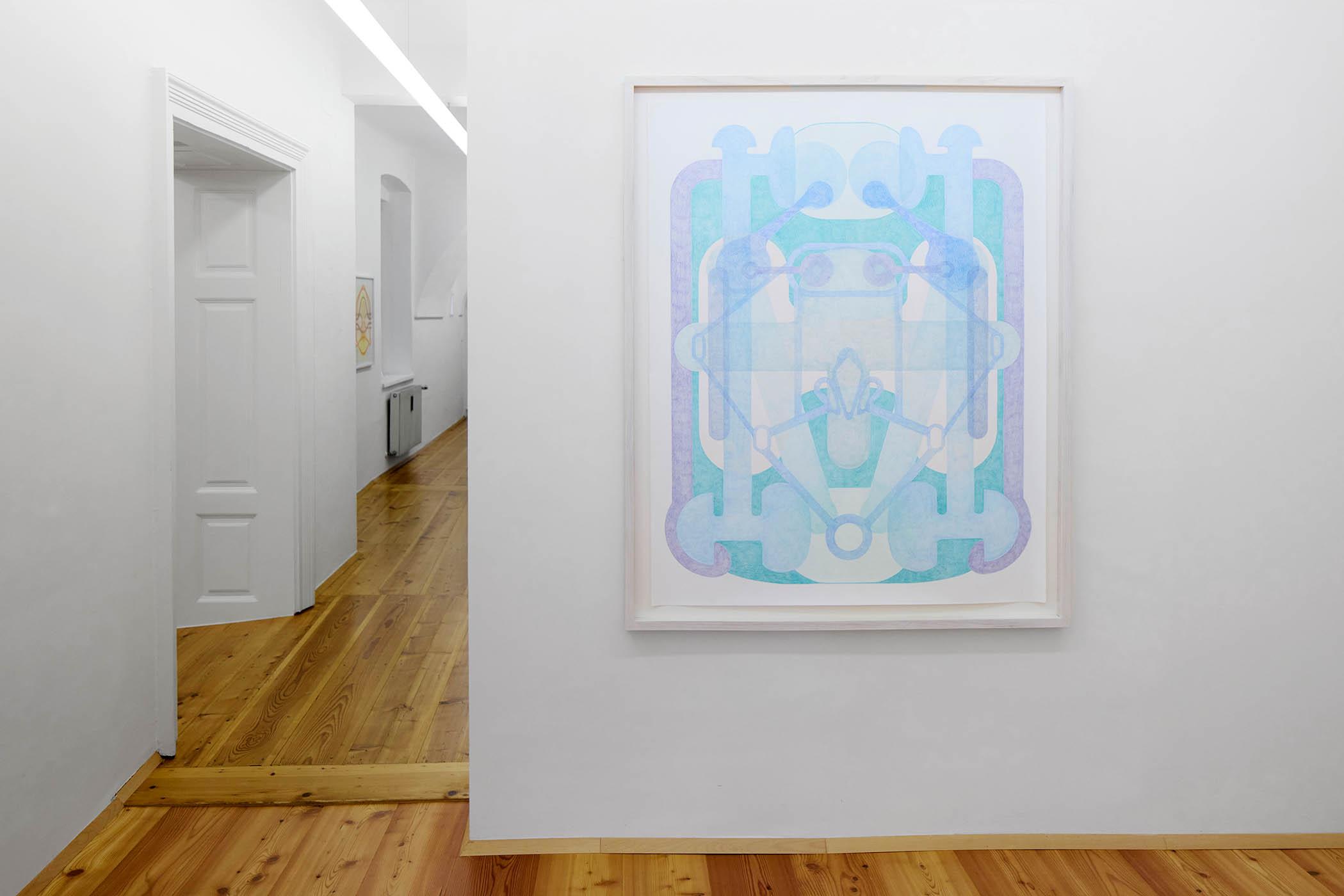 Vor rund fünf Jahren hat Iris Kohlweiss, die bei Christian Ludwig Attersee Malerei studiert hat, einen Quantensprung in ihrem künstlerischen Schaffen gemacht. Sie hat sich nicht nur dem Medium Zeichnung zugewandt, sondern auch begonnen, sich theoretisch und künstlerisch mit Raumwahrnehmungen und Raumempfindungen auseinanderzusetzen. Dabei hat sie in den kurzen Jahren eine originäre Bildsprache entwickelt, die eine so komplexe wie poetische Raummetaphorik hervorgebracht hat. Kunsthistorisch verknappt könnte man ihre Herangehensweise als Synthese von Maria Lassnigs Körpergefühlsbilder und Hilma af Klints Visualisierungen einer geistigen Dimension verorten. Die „Realm Translations“, wie Kohlweiss ihre damals begonnene Serie der „Raumübertragungen“ nennt, sind nicht nur vorläufiger Höhepunkt ihres künstlerischen Schaffens, sondern zollen auch ihrer lebenslangen Faszination für Räume und deren spezifische Atmosphären Rechnung. Doch nichts auf den Zeichnungen scheint auf den ersten Blick auf bestimmte Räume zu verweisen. Die Struktur der Komposition hat keinen Bezug zum jeweiligen Grundriss, noch spiegeln die Formen charakteristische Elemente des jeweiligen Raumes. Die fein nuancierte Farb- und Formensprache der Künstlerin führt also über das hinaus, was wir als unmittelbare Realität ansehen würden.