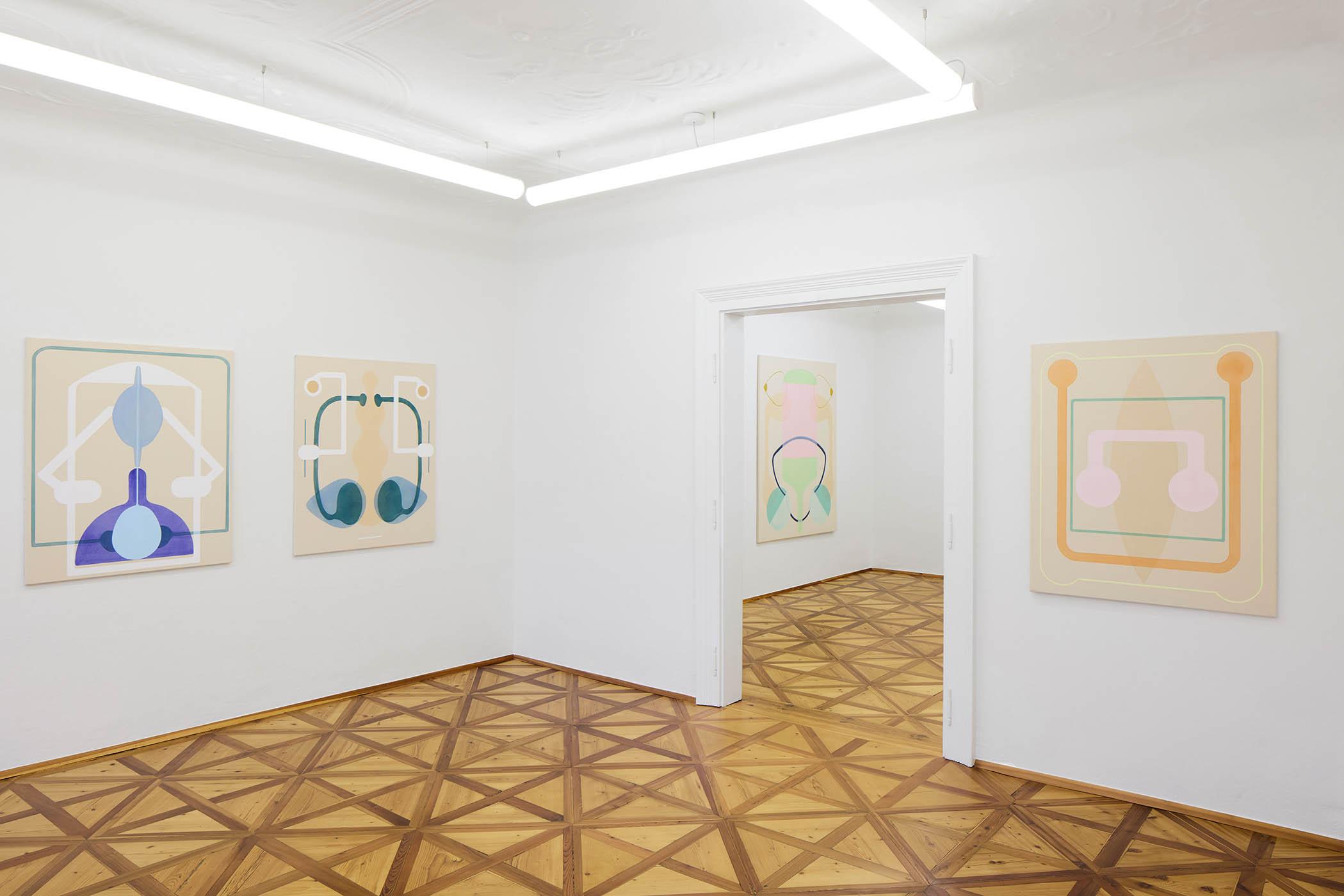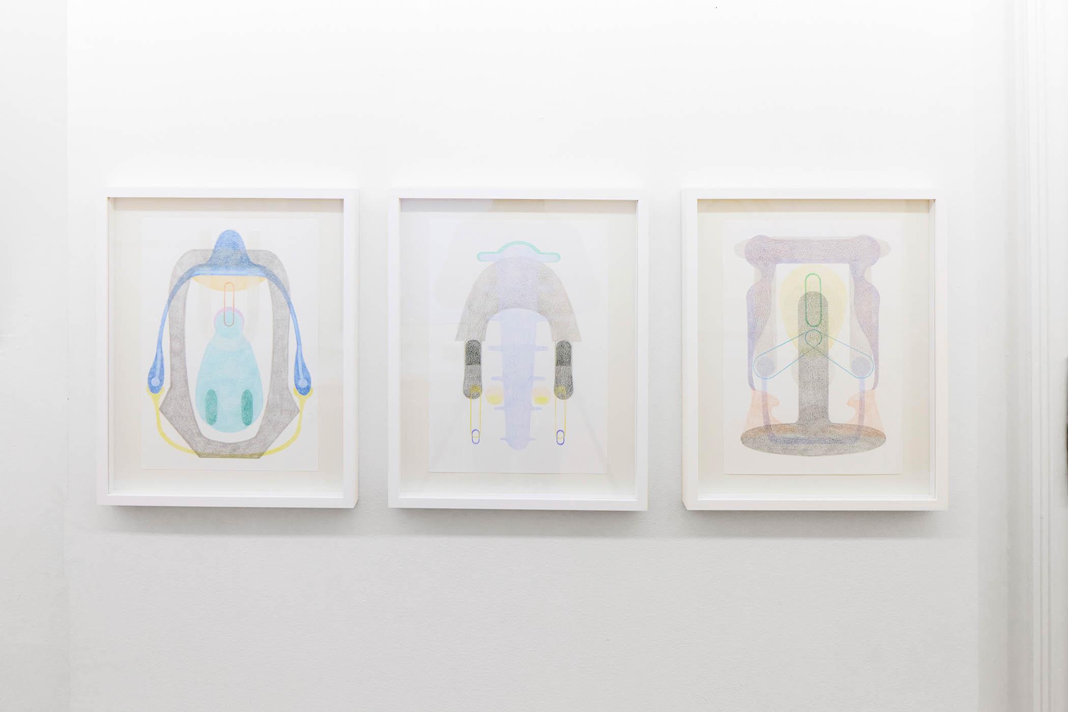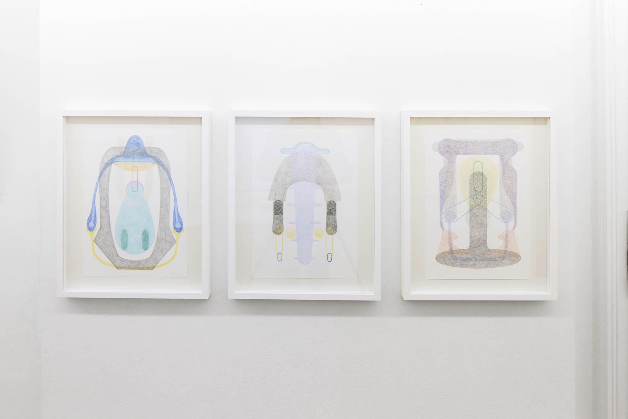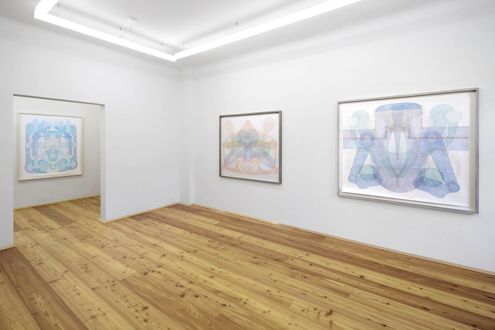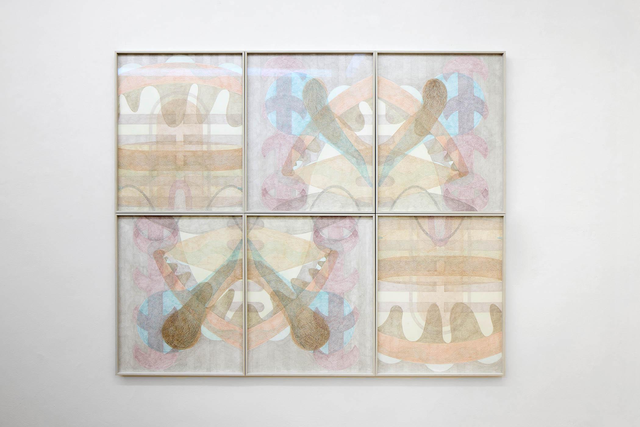 Vor rund fünf Jahren hat Iris Kohlweiss, die bei Christian Ludwig Attersee Malerei studiert hat, einen Quantensprung in ihrem künstlerischen Schaffen gemacht. Sie hat sich nicht nur dem Medium Zeichnung zugewandt, sondern auch begonnen, sich theoretisch und künstlerisch mit Raumwahrnehmungen und Raumempfindungen auseinanderzusetzen. Dabei hat sie in den kurzen Jahren eine originäre Bildsprache entwickelt, die eine so komplexe wie poetische Raummetaphorik hervorgebracht hat. Kunsthistorisch verknappt könnte man ihre Herangehensweise als Synthese von Maria Lassnigs Körpergefühlsbilder und Hilma af Klints Visualisierungen einer geistigen Dimension verorten. Die „Realm Translations“, wie Kohlweiss ihre damals begonnene Serie der „Raumübertragungen“ nennt, sind nicht nur vorläufiger Höhepunkt ihres künstlerischen Schaffens, sondern zollen auch ihrer lebenslangen Faszination für Räume und deren spezifische Atmosphären Rechnung. Doch nichts auf den Zeichnungen scheint auf den ersten Blick auf bestimmte Räume zu verweisen. Die Struktur der Komposition hat keinen Bezug zum jeweiligen Grundriss, noch spiegeln die Formen charakteristische Elemente des jeweiligen Raumes. Die fein nuancierte Farb- und Formensprache der Künstlerin führt also über das hinaus, was wir als unmittelbare Realität ansehen würden.