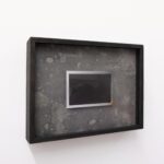 Acetonfrottage auf Glas, pigmentiertes Leinöl auf Reispapier, Rahmen koloriert mit Tusche
