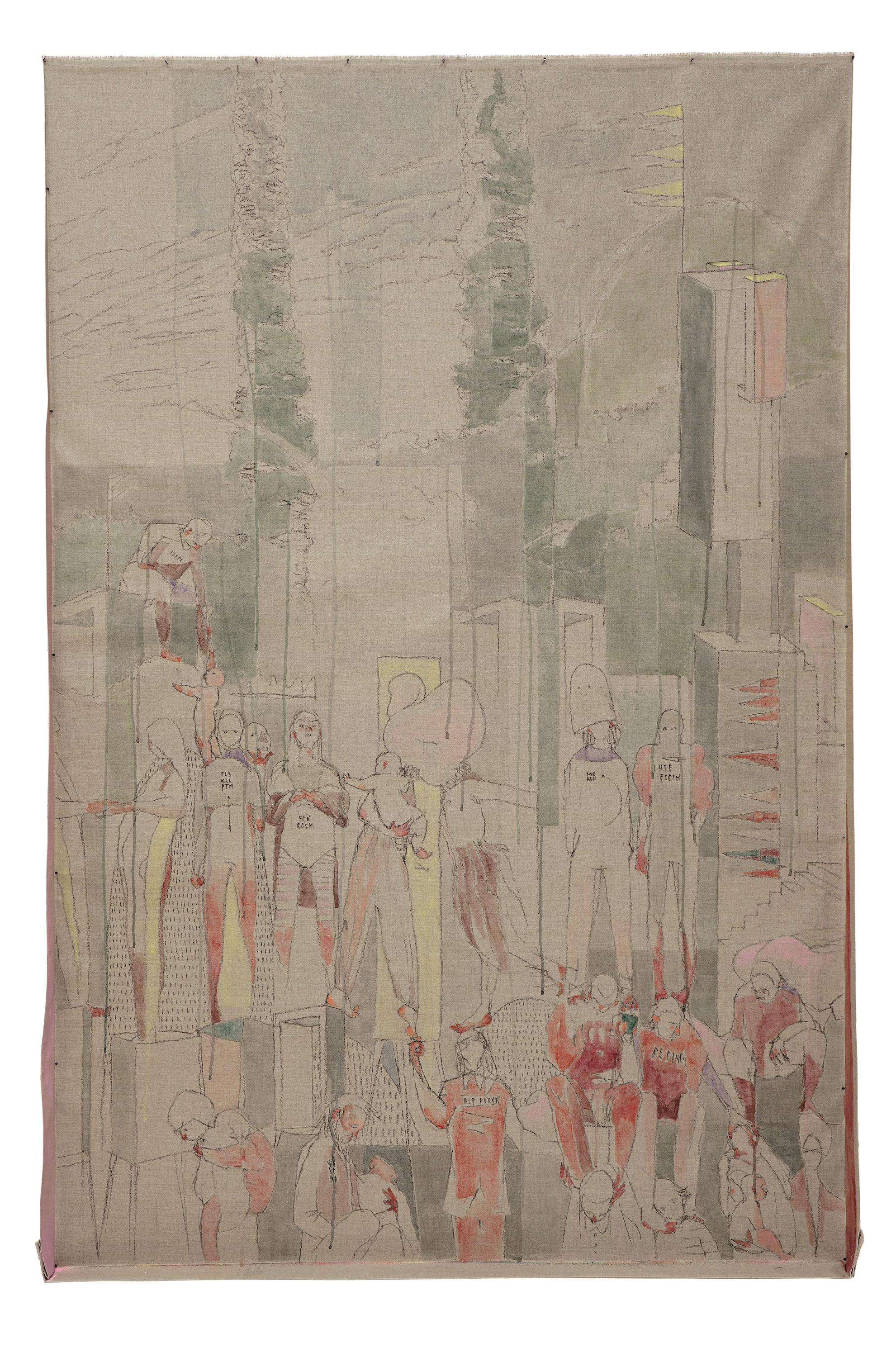 Kohle, Pigment und Tinte auf vorgeleimtem Leinen