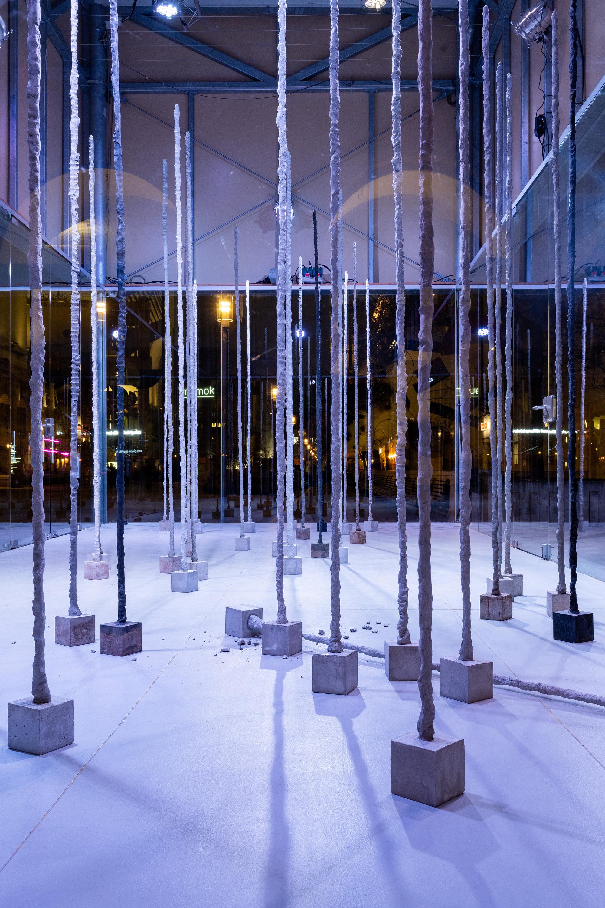 Aquarell - Kreide, Acryl und Wolle auf Beton