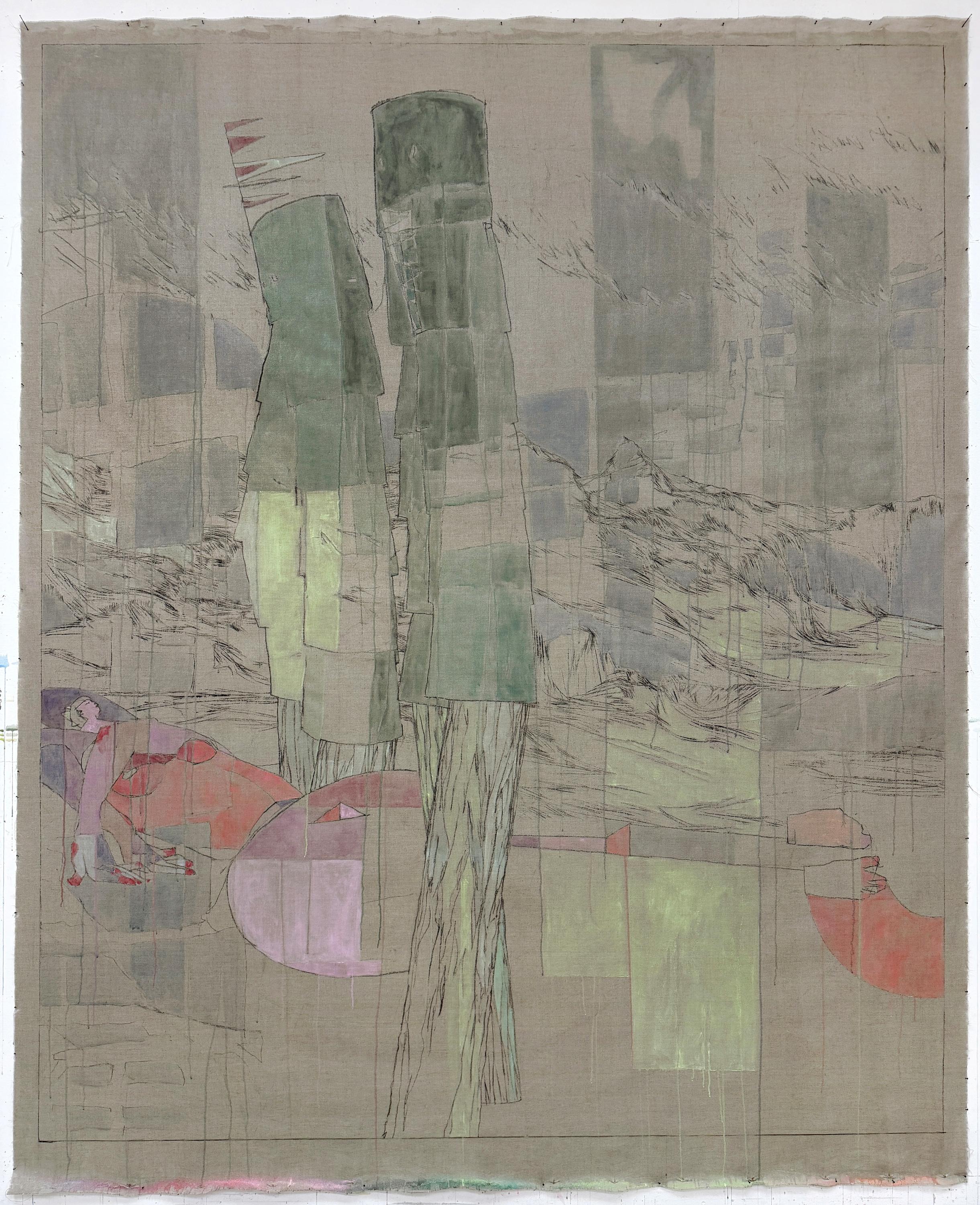 Kohle, Pigment, Tinte und Acryl auf vorgeleimtem Leinen
