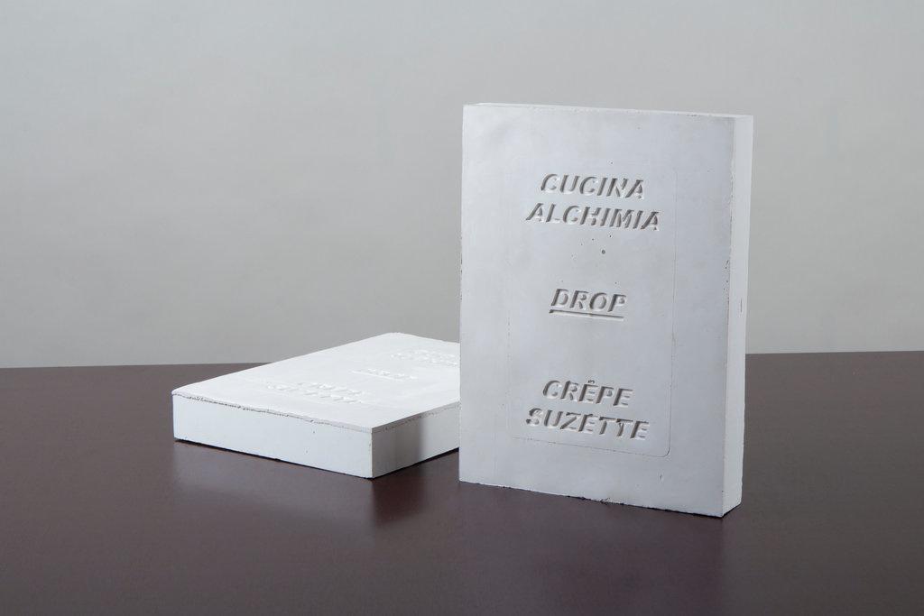 Plaster cast, dehydrated und vacuum packed egg, milk, butter, vacuum packed flour, rum, orange-sugar