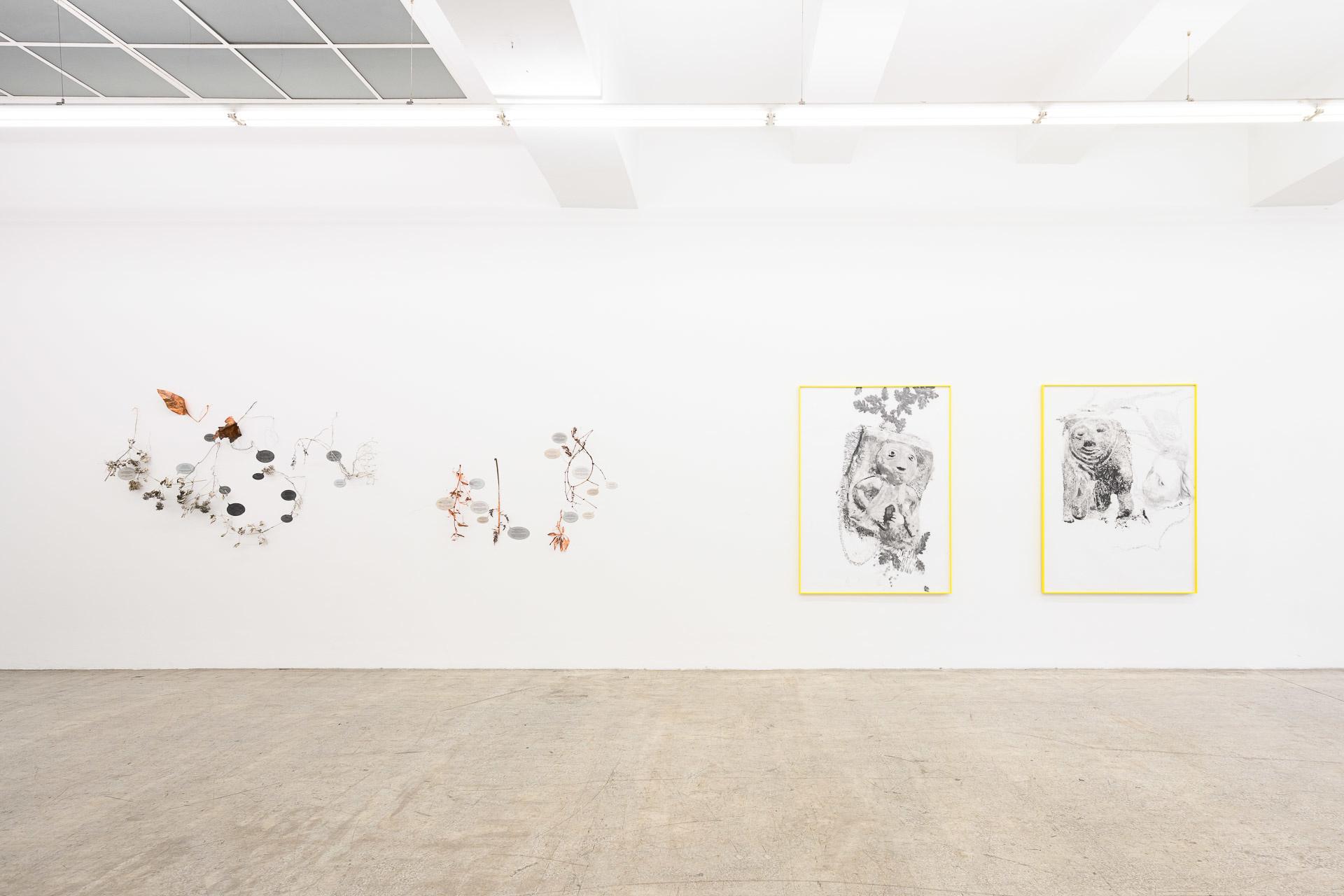 Kopierstift, Graphit, Pigment, und Acryl auf Mylar
