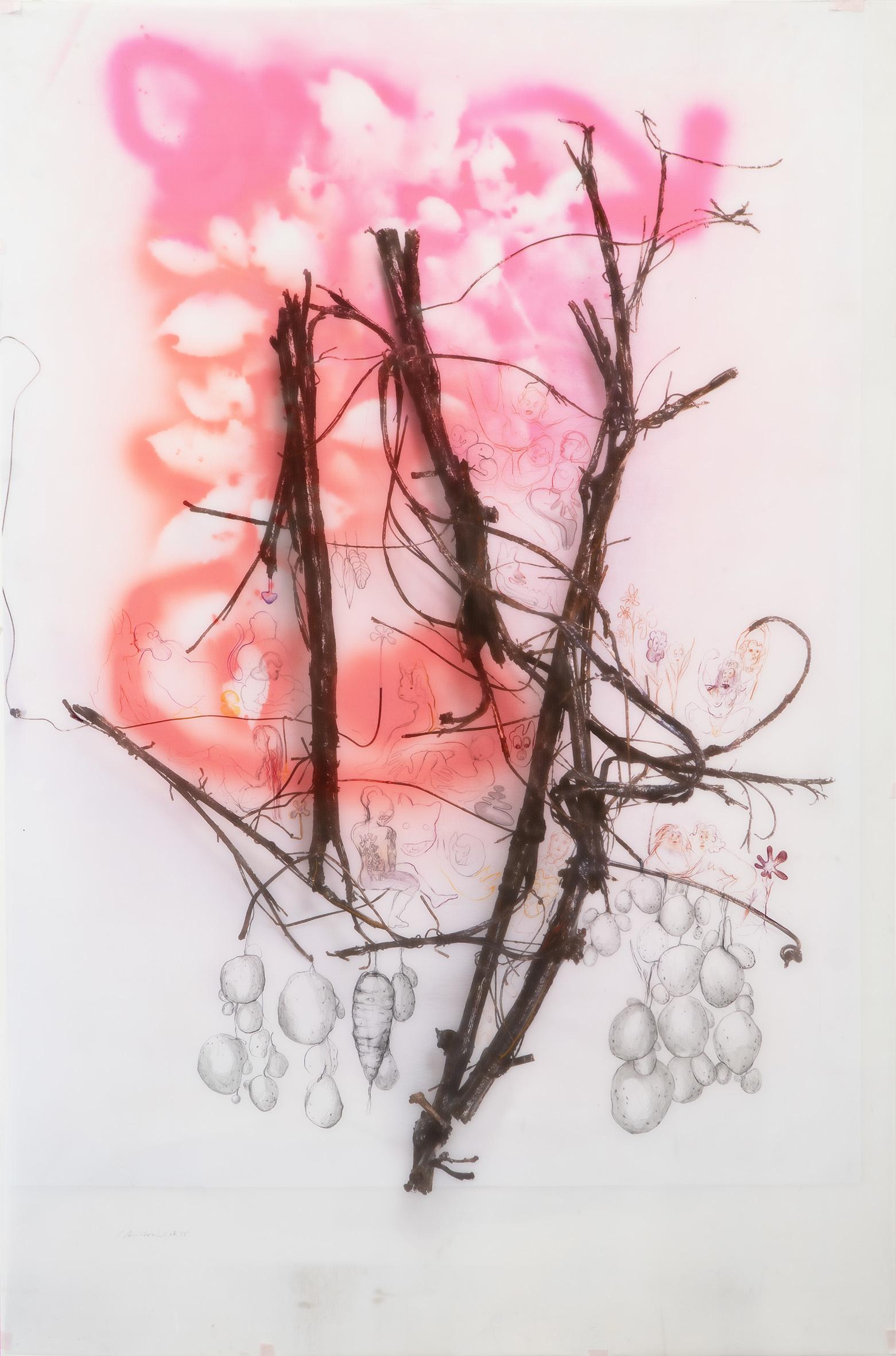 Kopierstift, Graphit, Pigment, und Acryl auf Mylar