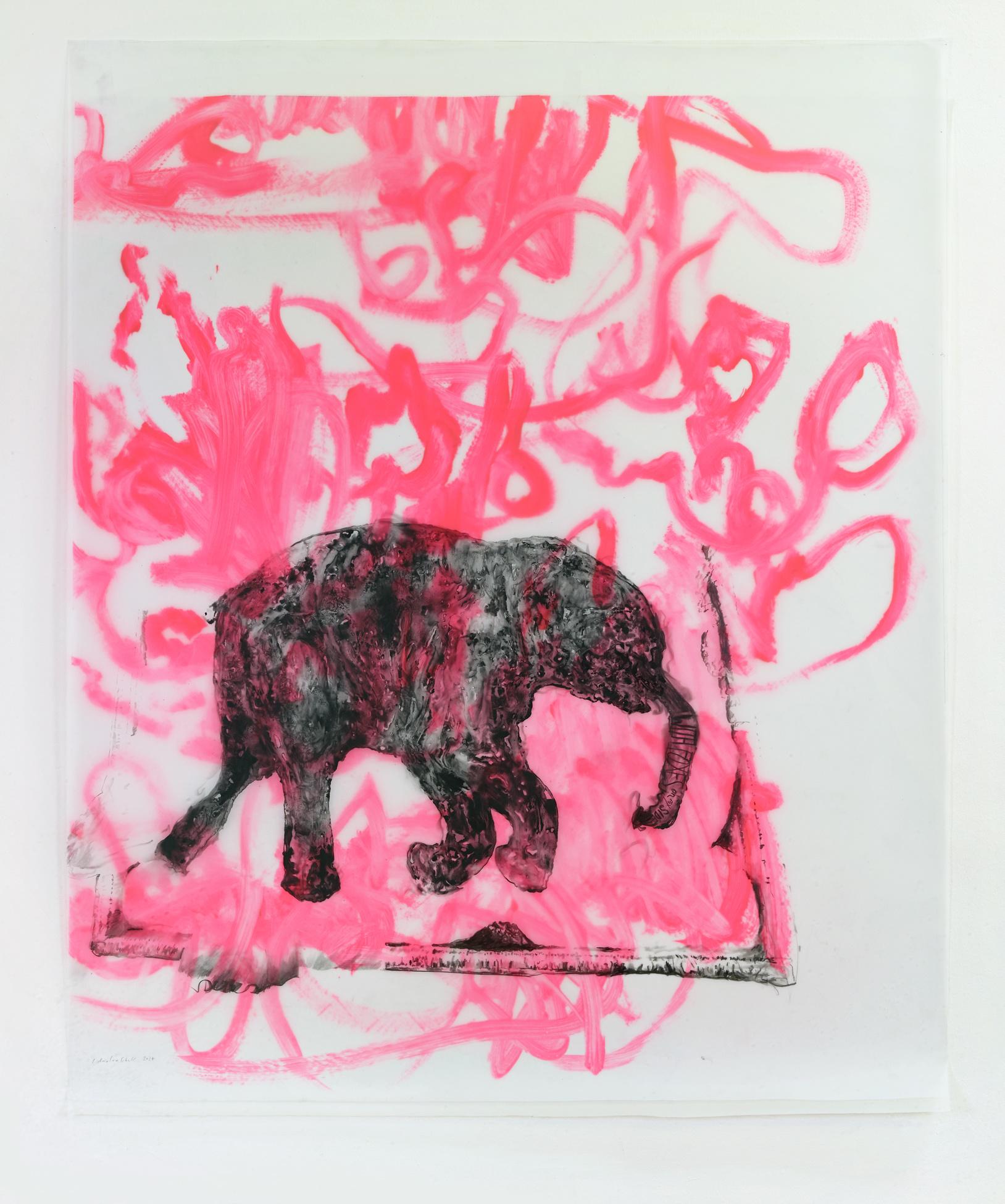 Kopierstift, Graphit, Pigment, und Acryl auf Mylar