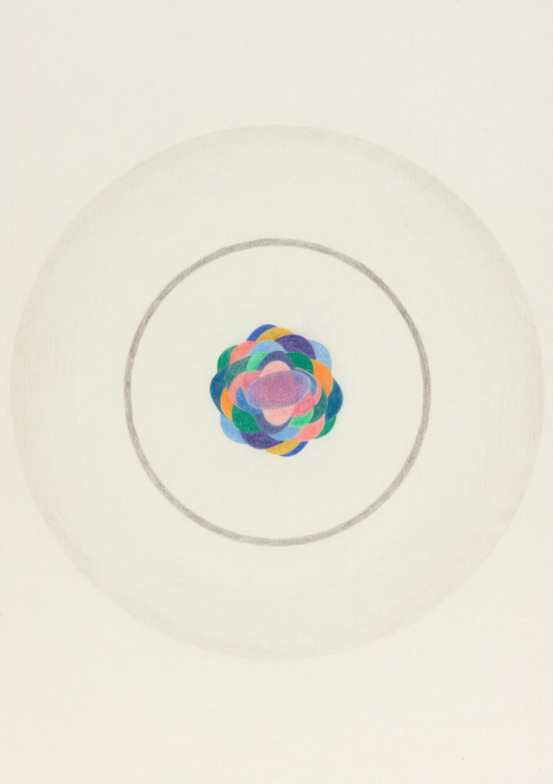 Buntstift auf Papier, Eichenrahmen weiss lasiert ohne Glas