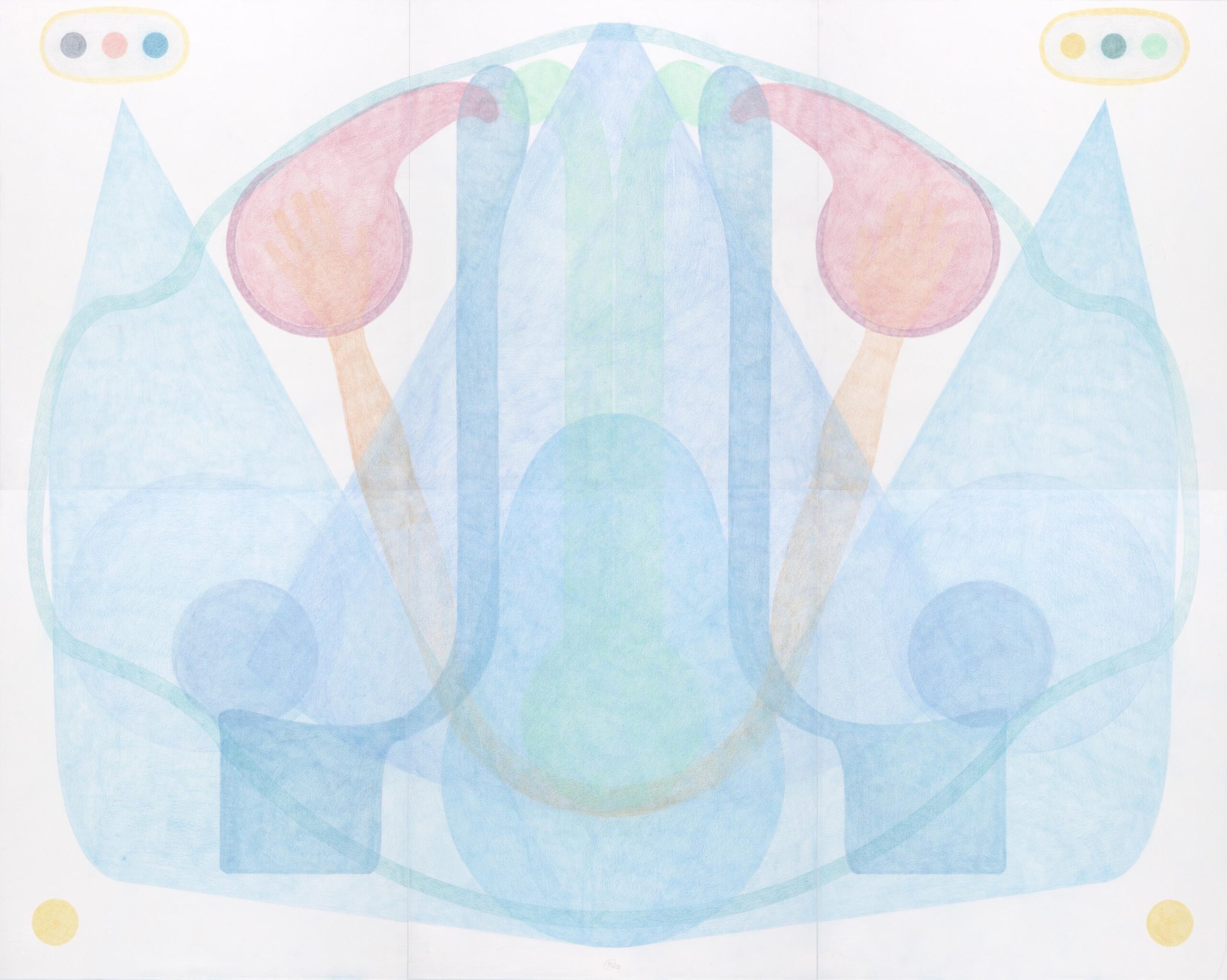 Buntstift auf Papier, Eichenrahmen weiss lasiert ohne Glas