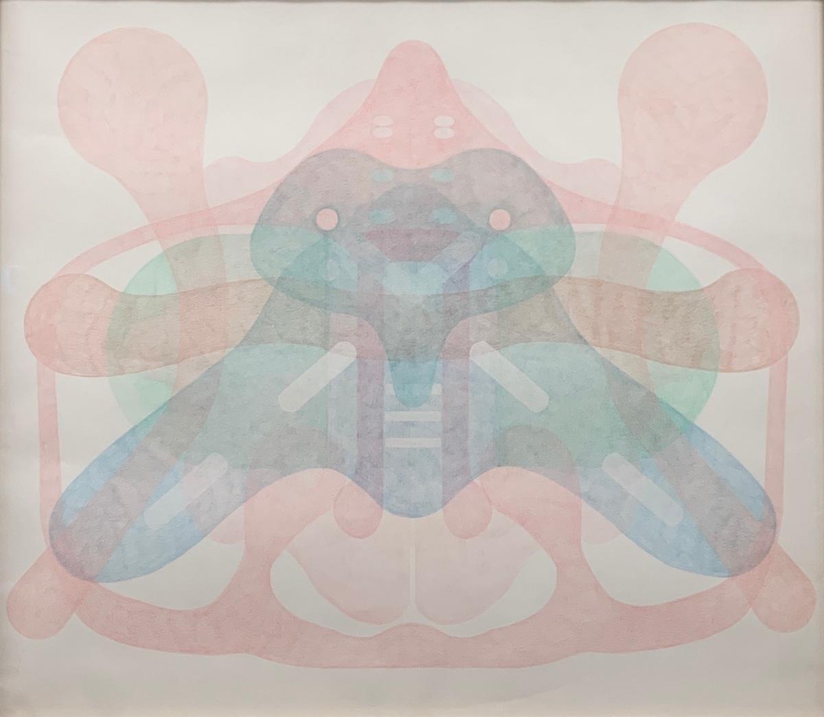 Buntstift auf Papier, Eichenrahmen weiss lasiert mit Museumsglas
