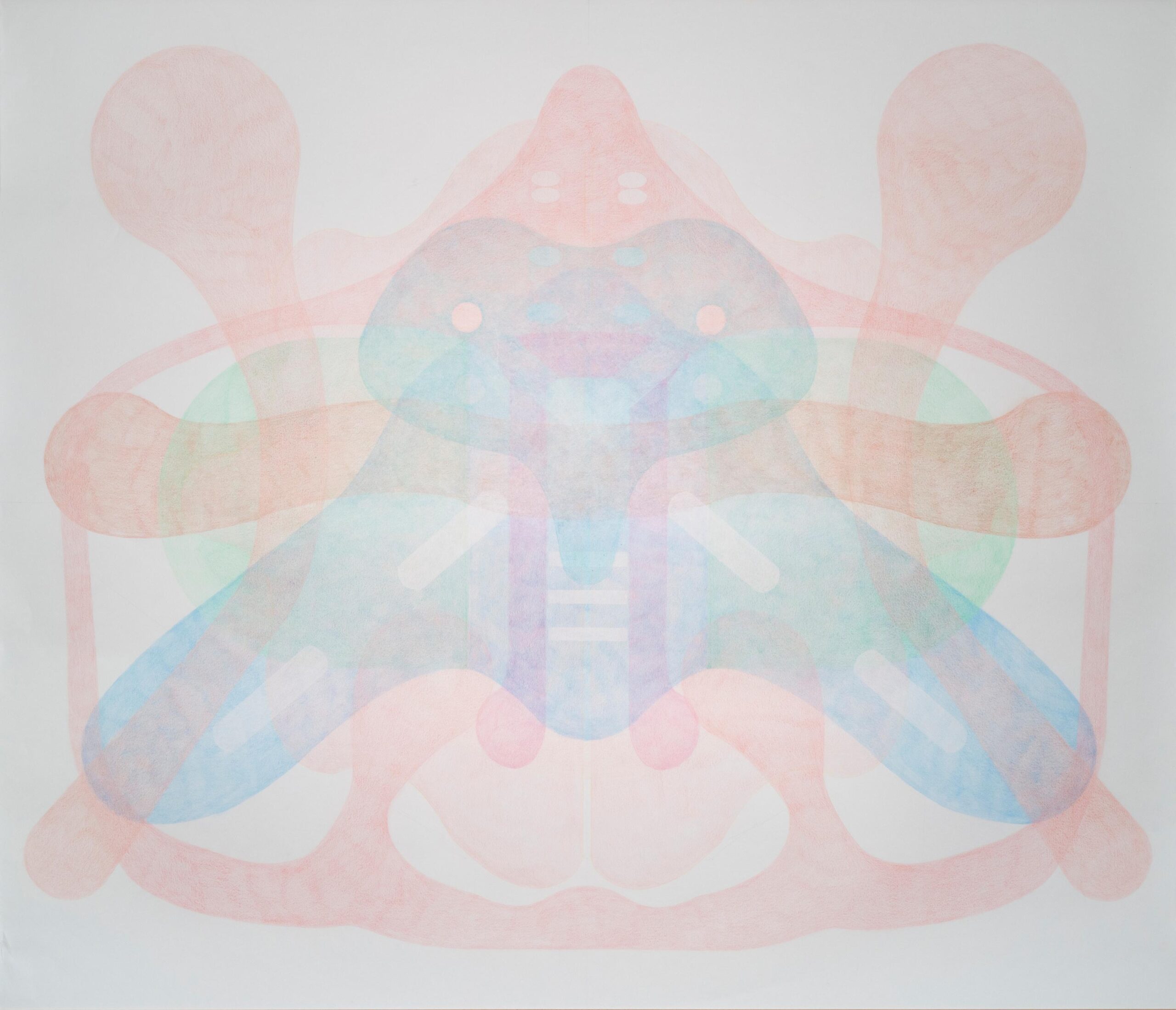 Buntstift auf Papier, Eichenrahmen weiss lasiert ohne Glas