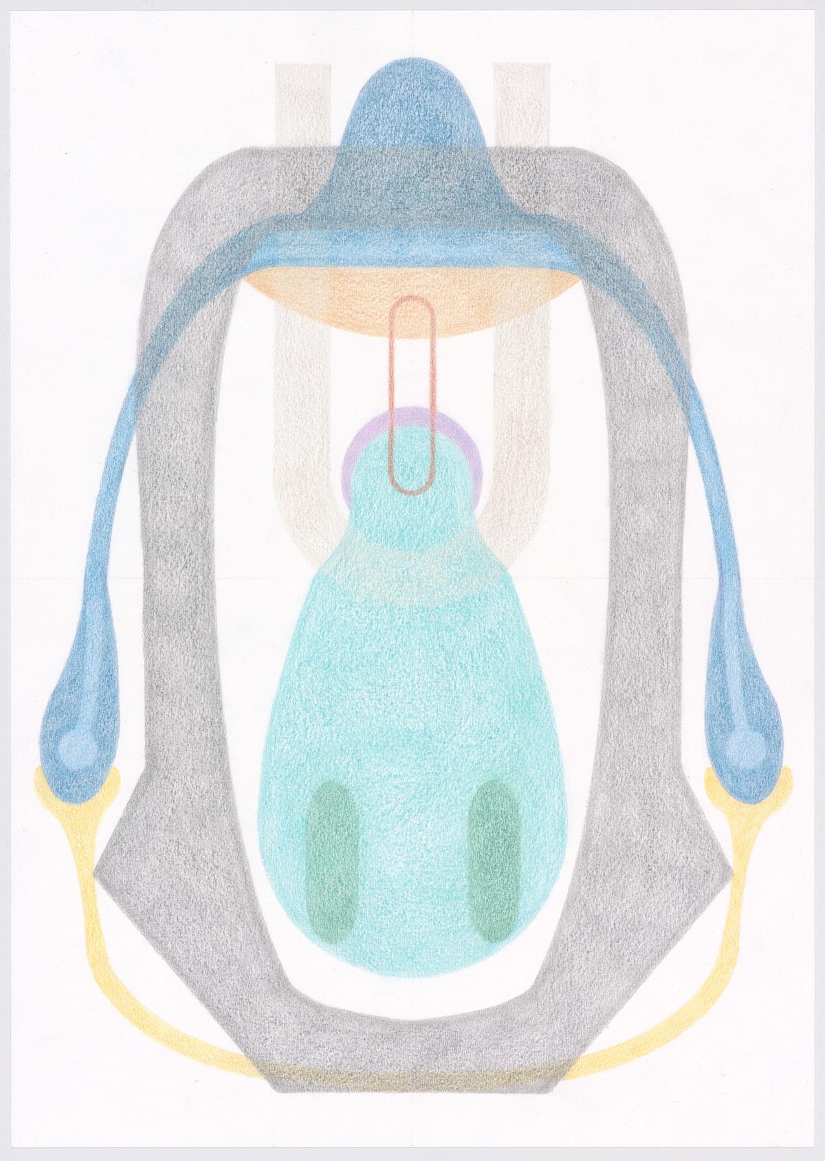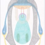 Buntstift auf Papier, Eichenrahmen weiss lasiert ohne Glas