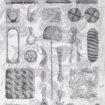 Prägungen mit Bleistift, Buntstift, Grafitpulver und Pastell auf Papier