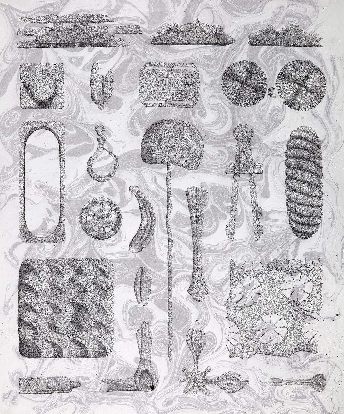 Radierung mit Grafitpaste und Bleistift auf Papier